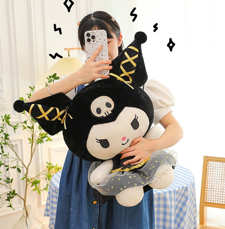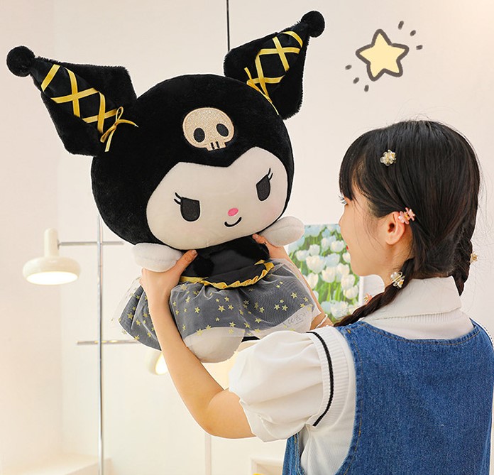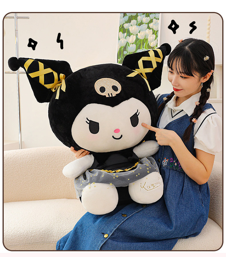 Unleash your dark side with this adorable Gothic Black Kuromi Plush Toy! Featuring a lace-trimmed dress, this plush is the perfect addition to any spooky cute collection. Made with super soft materials for ultimate cuddling.
