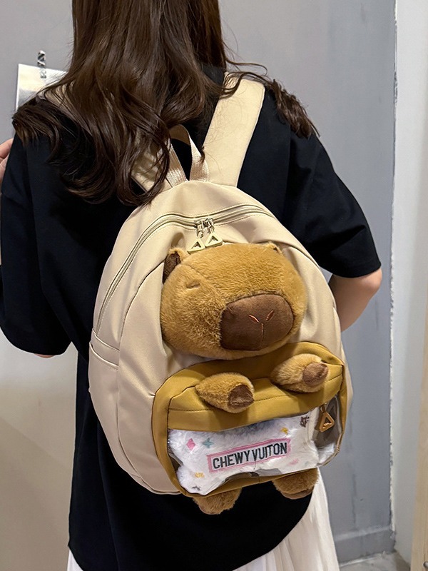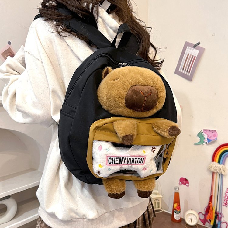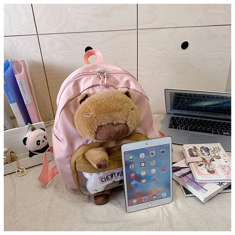 Let your child's imagination soar with our Cute Capybara Doll Backpack! This soft and cuddly backpack is perfect for little adventurers. Featuring a friendly capybara dolland a spacious interior, it's ideal for carrying all their essentials. The adjustable straps ensure a comfortable fit for kids of all sizes.