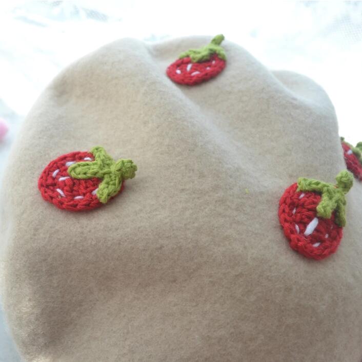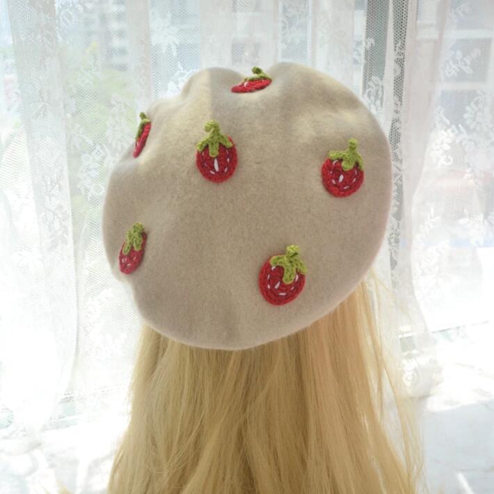 Straweberry Handmade Woolen Beret Hat