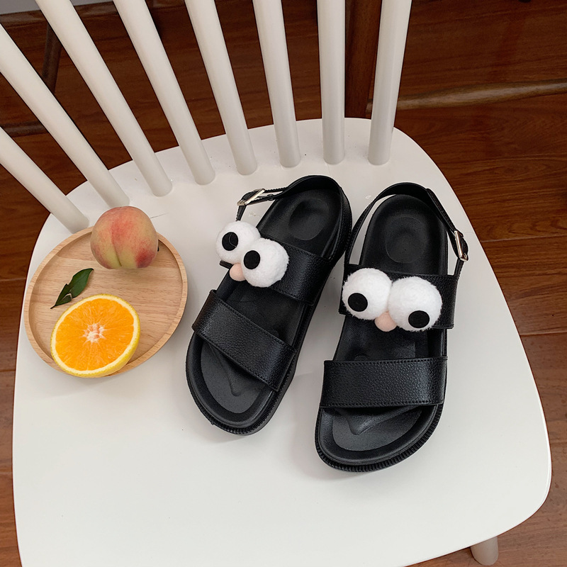 Chic Kawaii Eyes Black Sandals