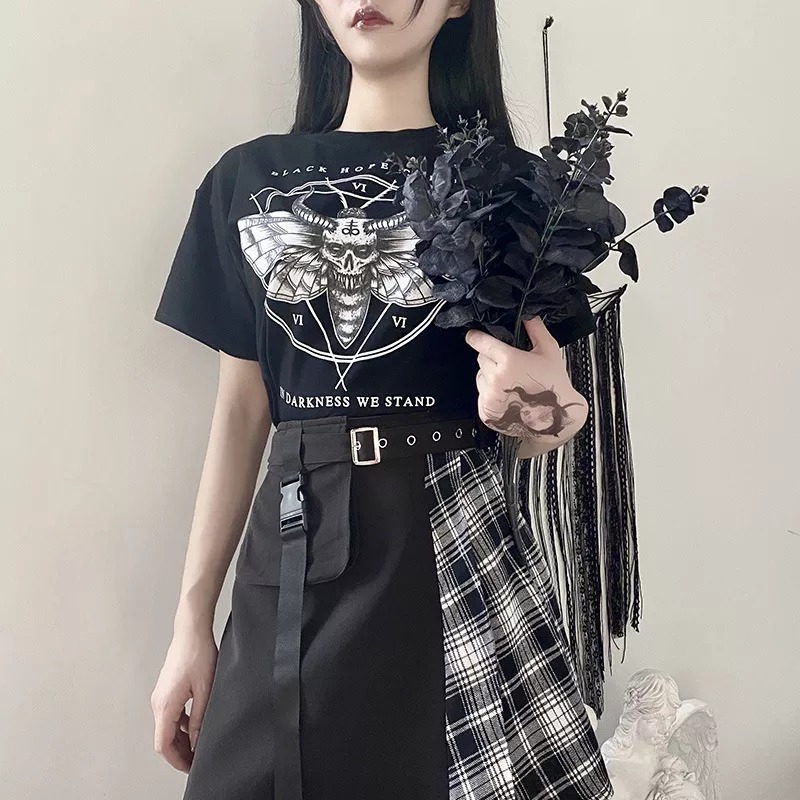 Gothic Anime Girl Printed Harajuku Black T-shirt