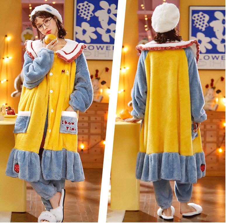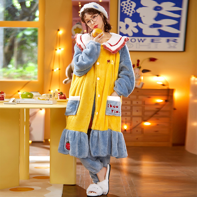 Strawberry Ruffle Fluffy Warm Pajama Nightgown Set