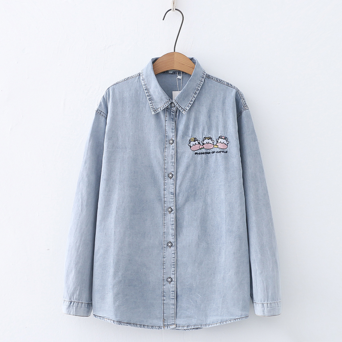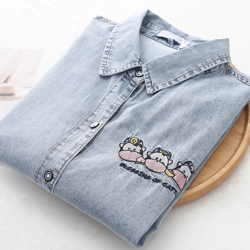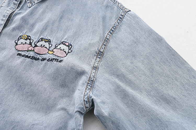 Cute Cow Embroidered Denim Shirt