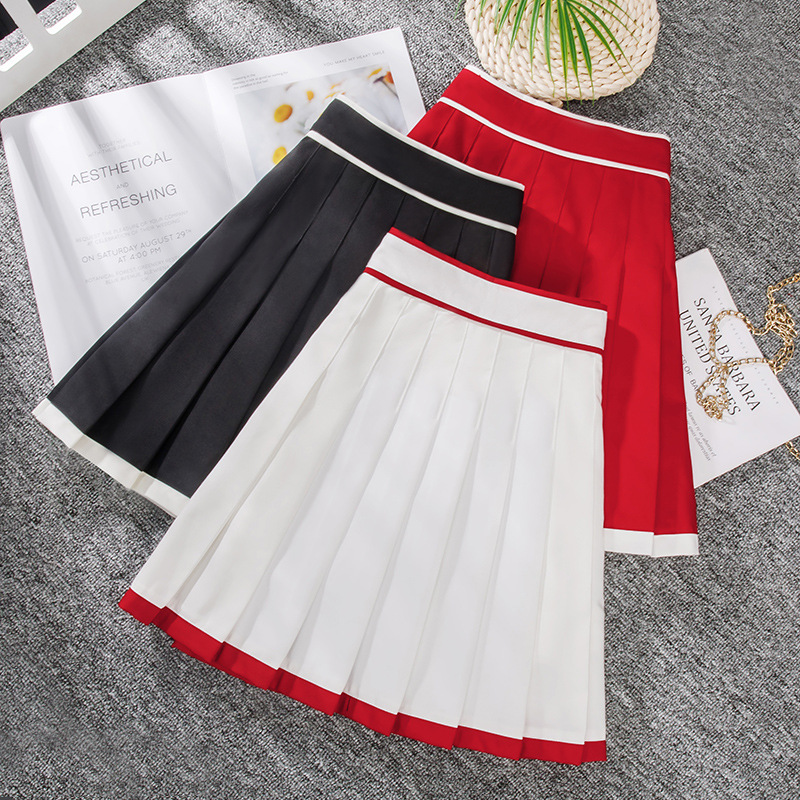 Color Block Pleated A-line Skirt