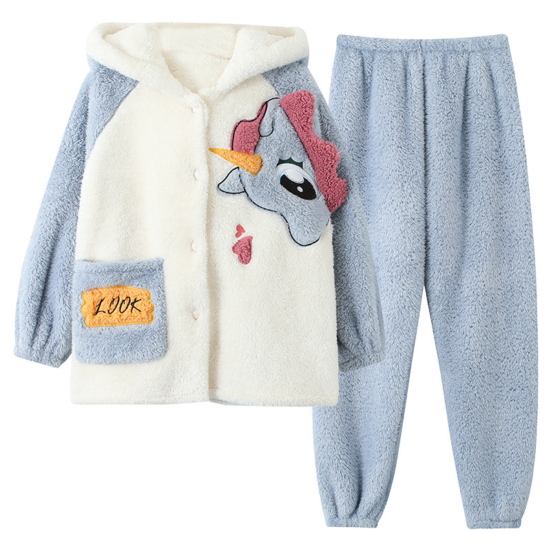 Kawaii Unicorn Hooded Fluffy Warm Pajama Set