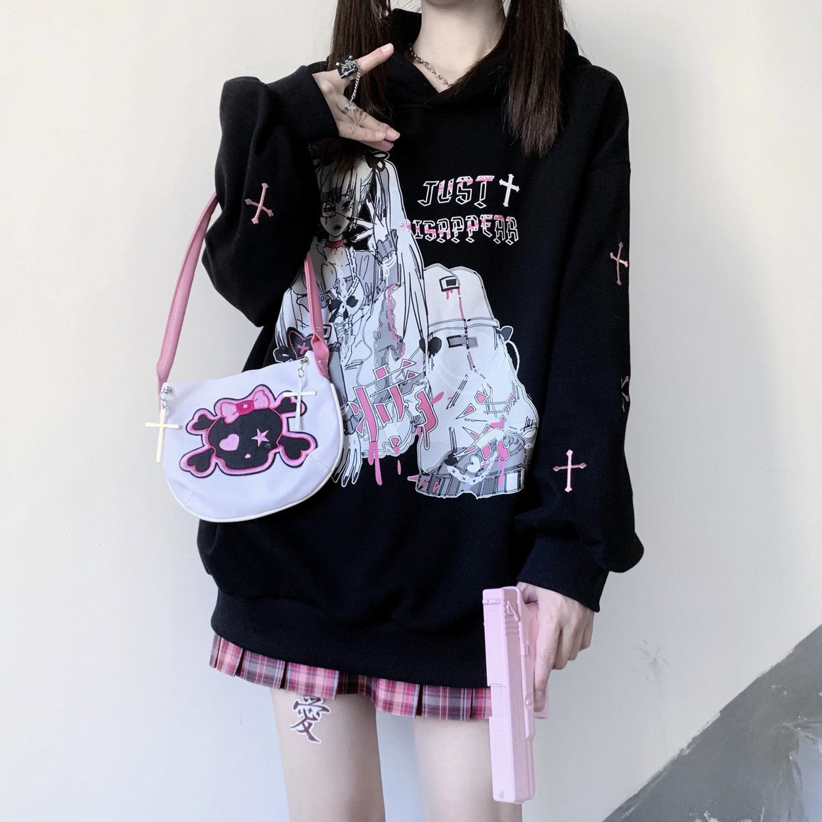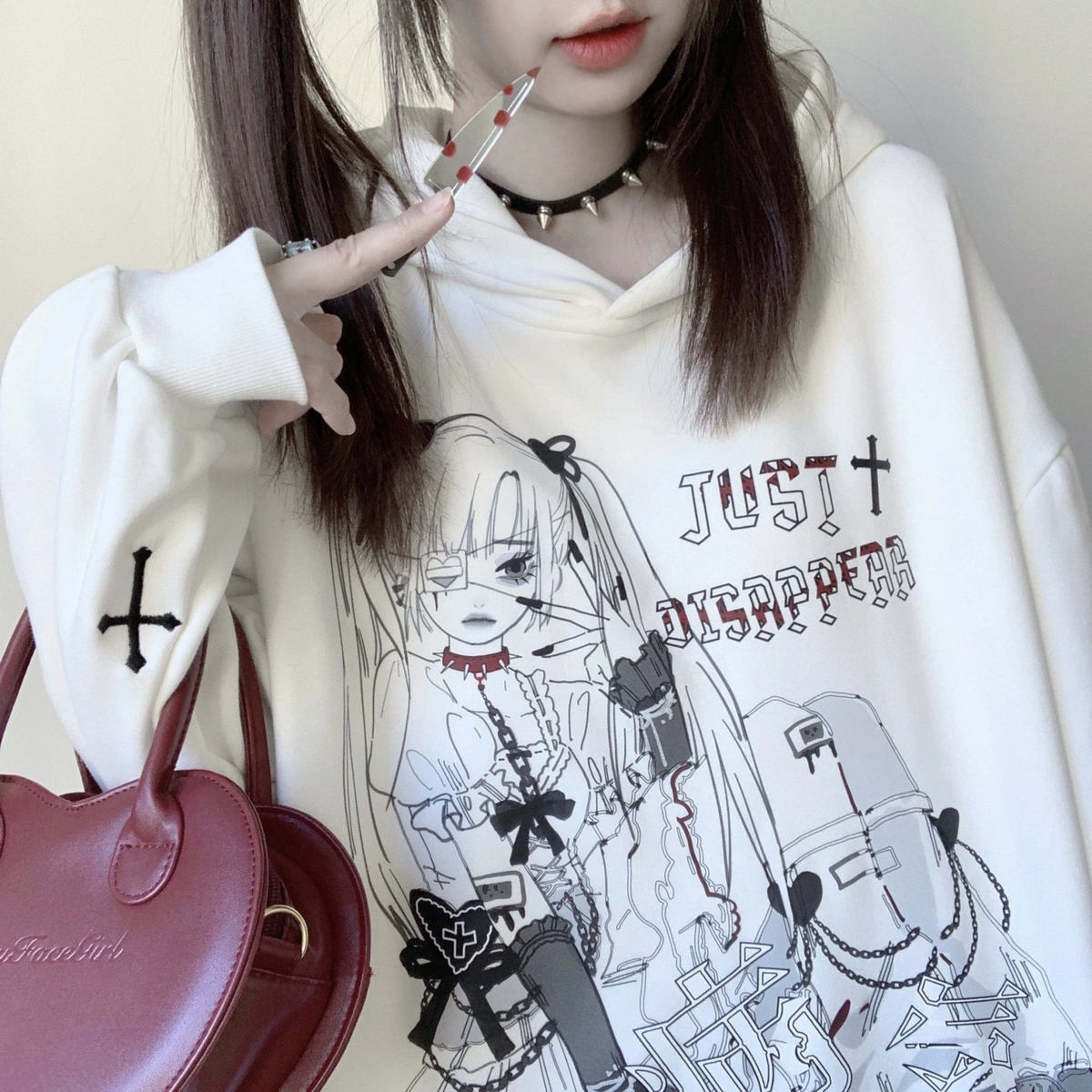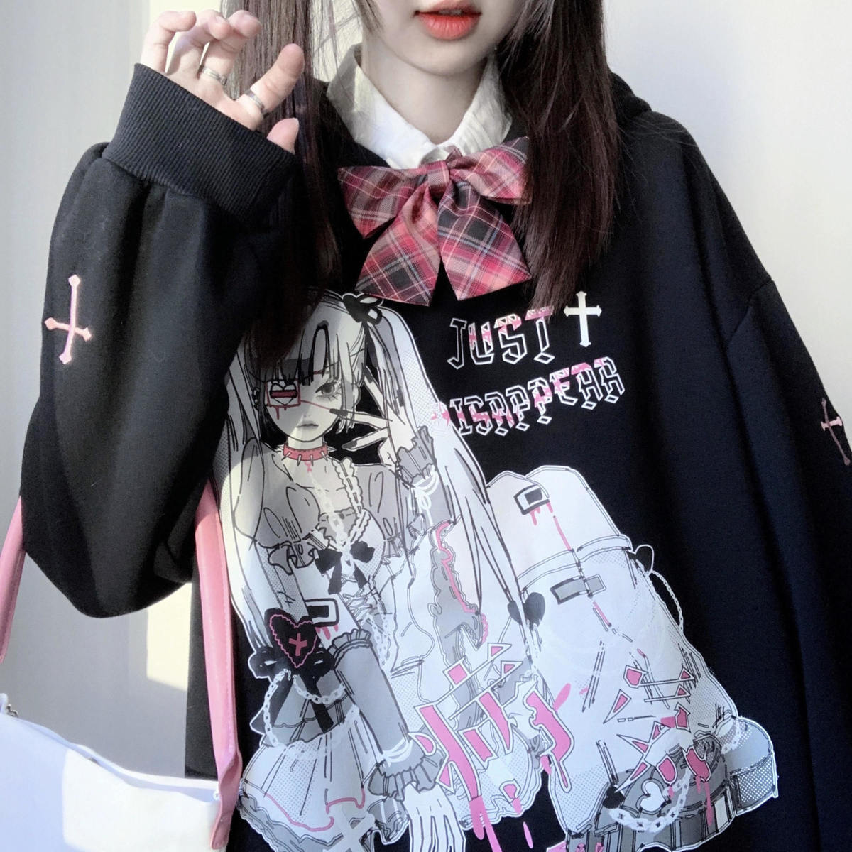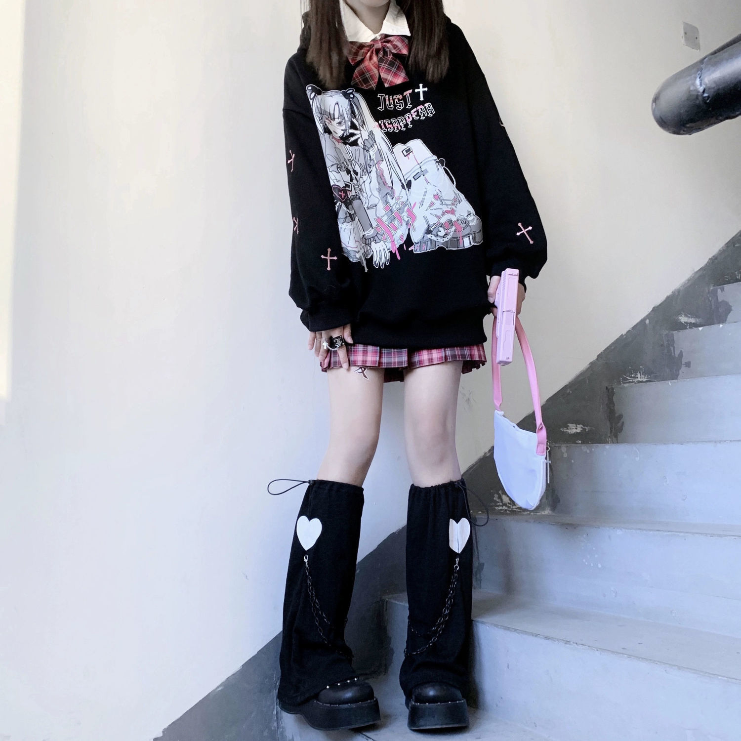 Harajuku Style Anime Girl Printed Sweater Crew Neck Pullover