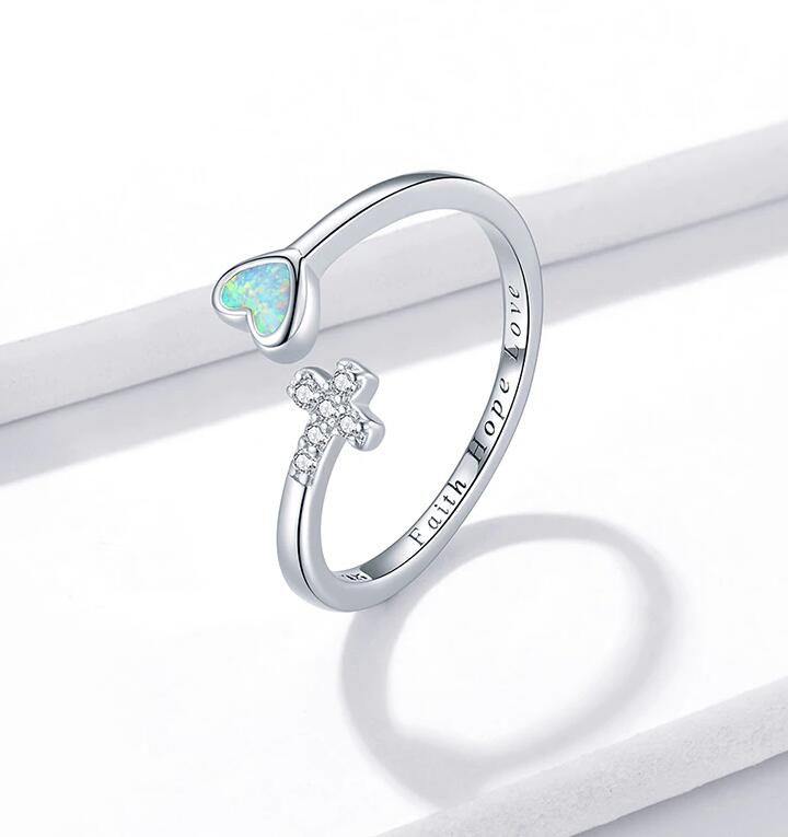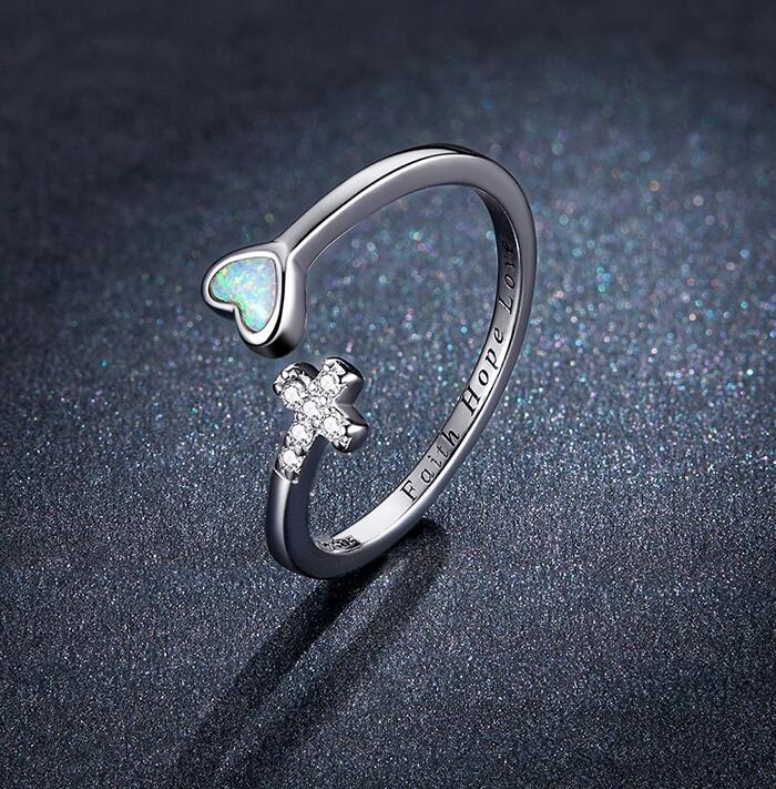 Love cross Opal Heart Faith Hope Love Open Adjustable Finger Rings