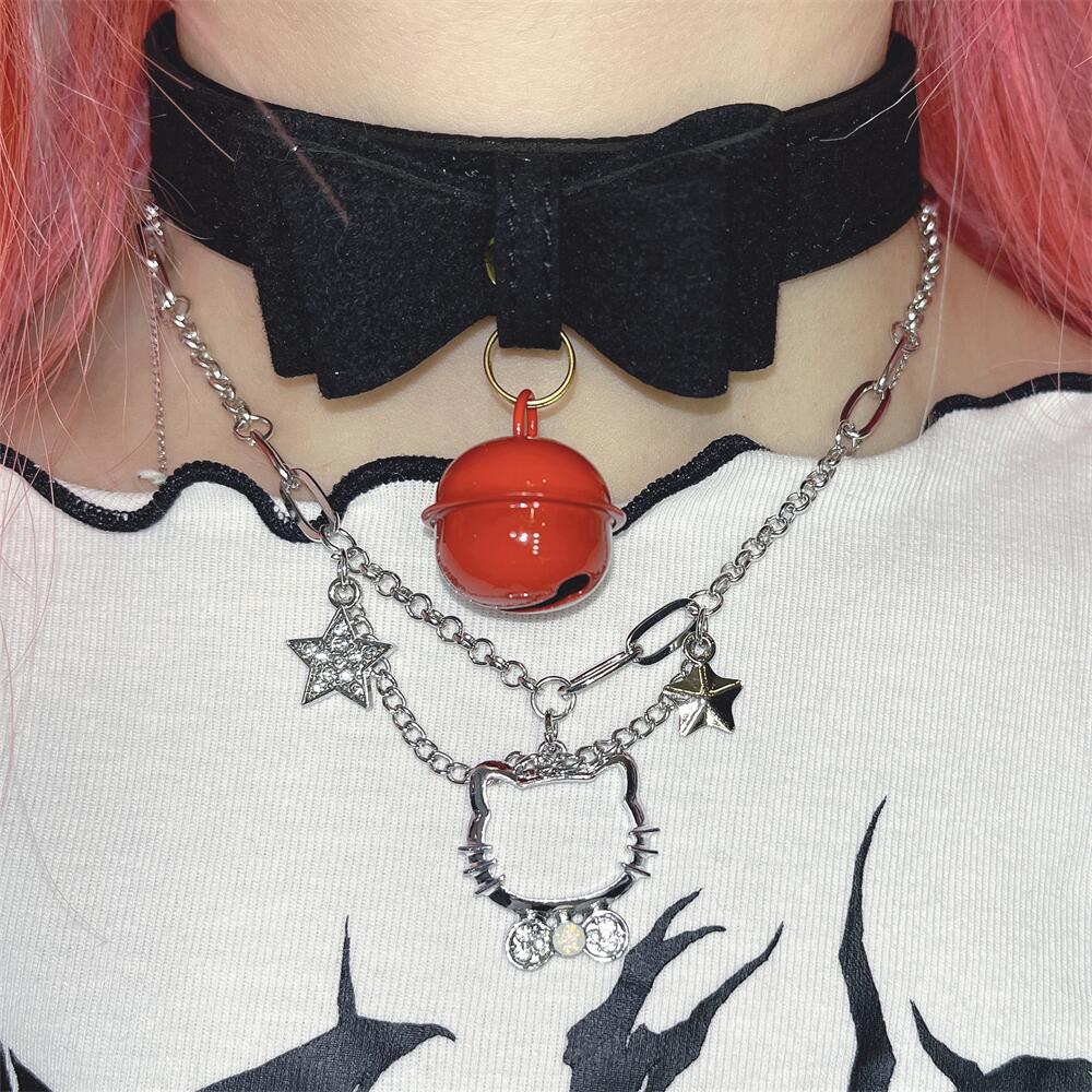 Exaggerated ghost hands multi-layer skull Gothic alloy necklace