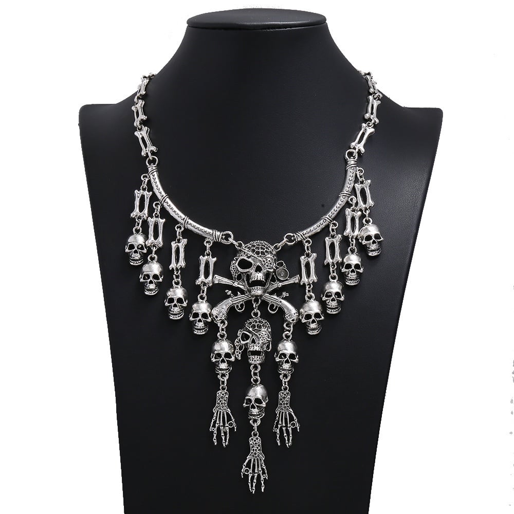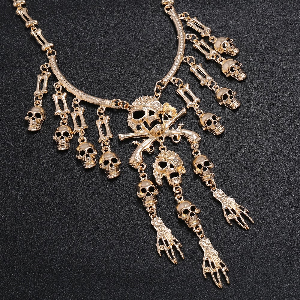 Punk Exaggerated Alloy Skull Ghost Hand Necklace Halloween Accessories