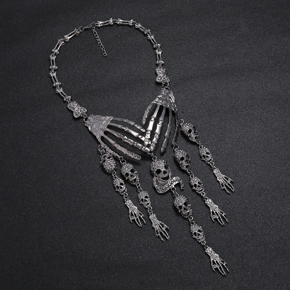 Exaggerated ghost hands multi-layer skull Gothic alloy necklace