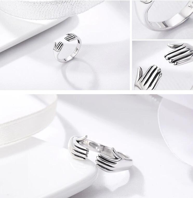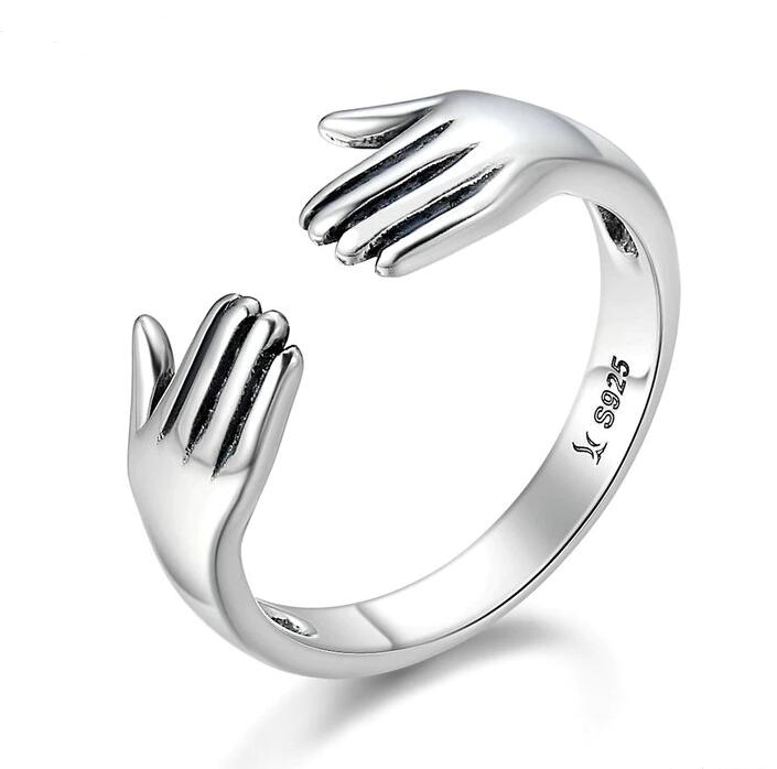 Genuine 925 Sterling Silver Double Layer Give Me A Hug Hand Open Finger Ring