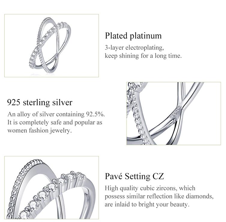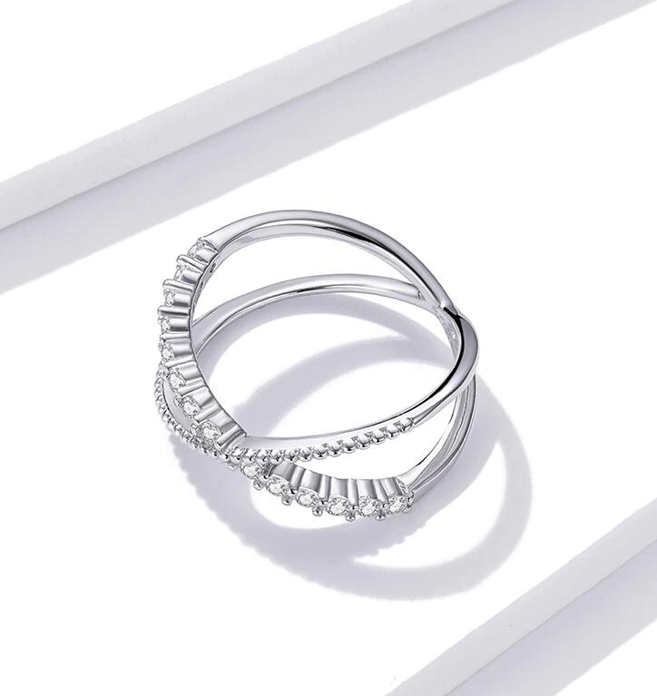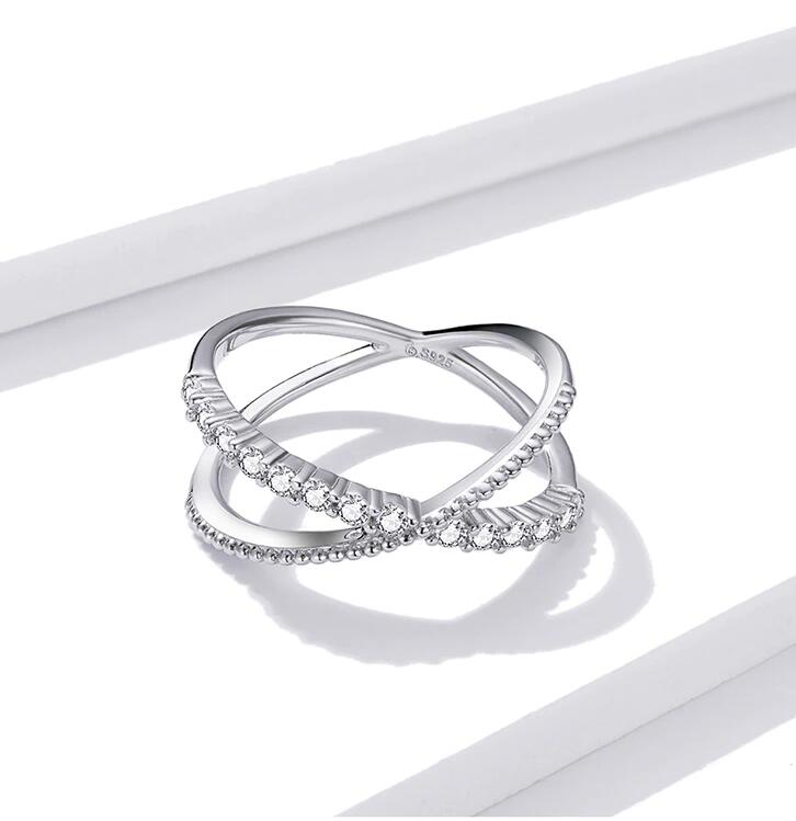 Sparkle Interwoven Ring 925 Sterling Silver CZ Zircon Finger Ring