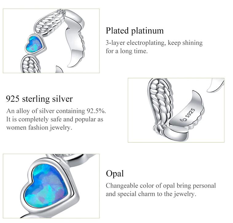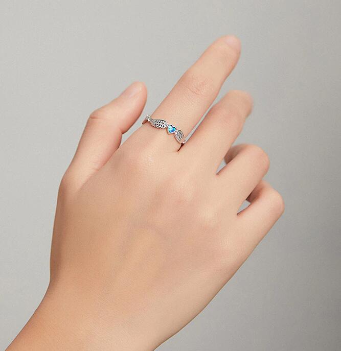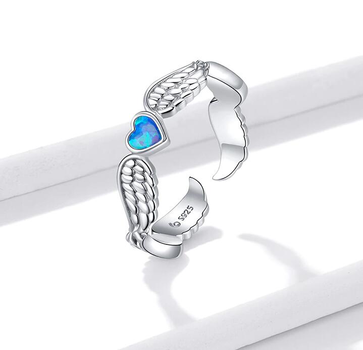 Elegant Angel Wing Blue Heart Love Stone Adjustable Finger Ring
