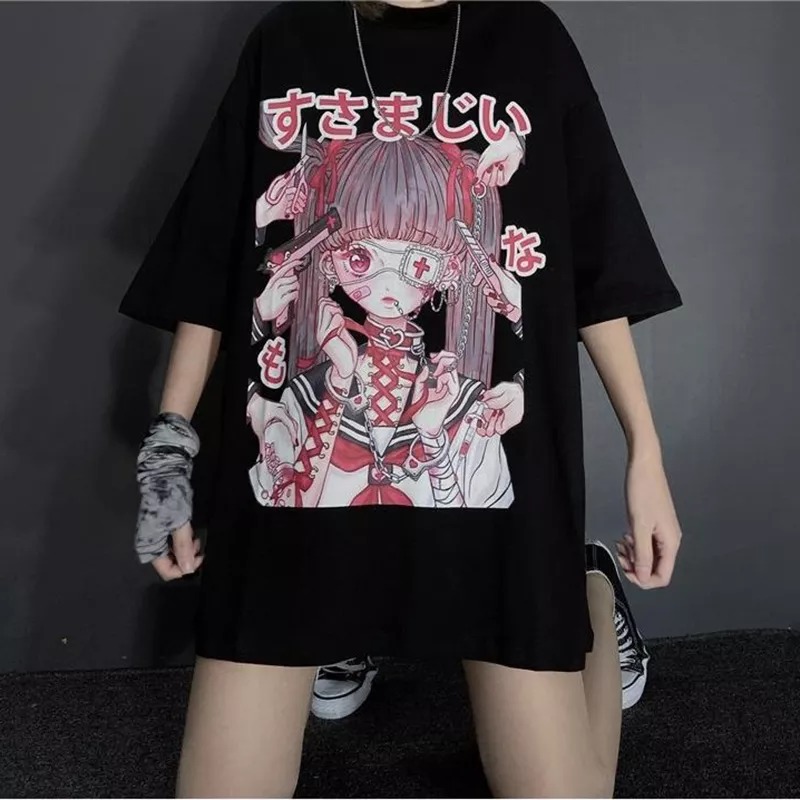 Gothic Anime Prints Aesthetic Loose Tshirt