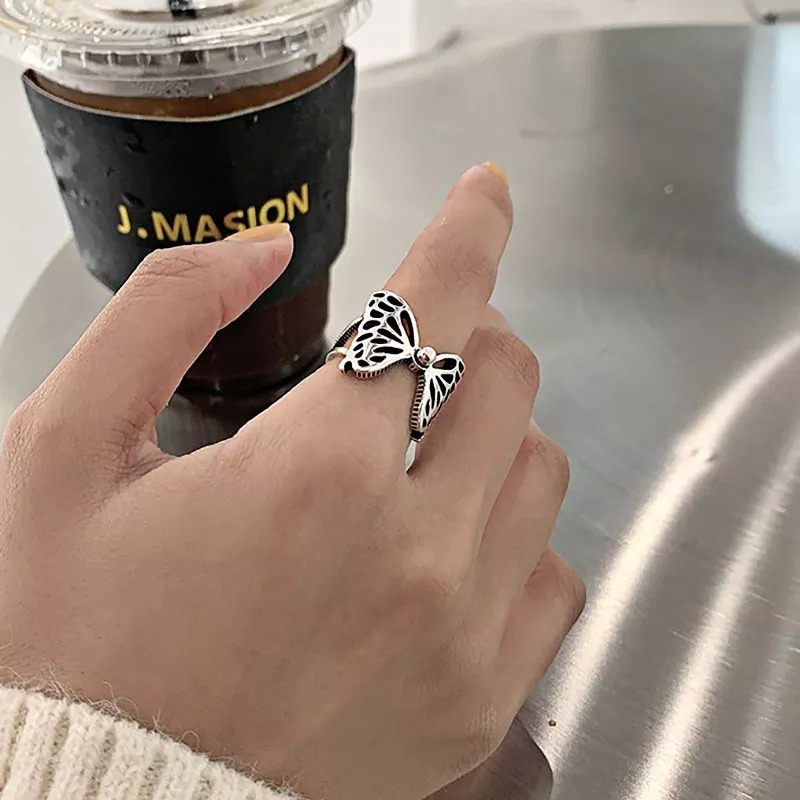 925 Sterling Silver Hollow Butterfly Wings Ring Set