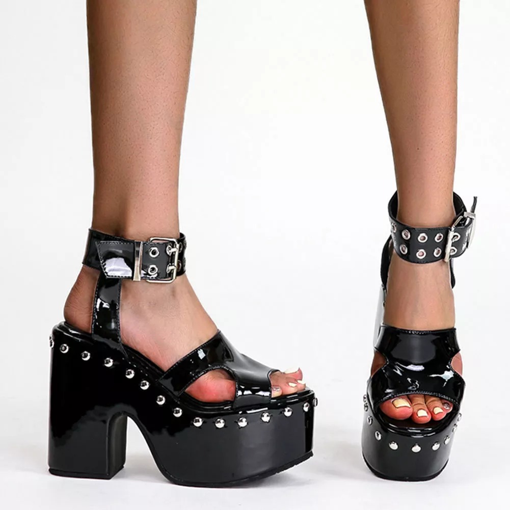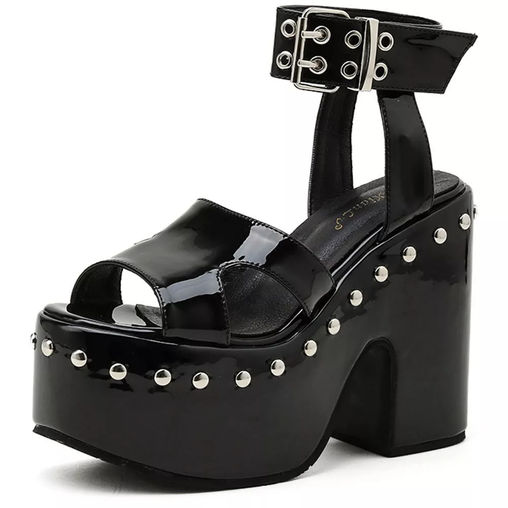 Chunky High Heel Black Gothic Cool Summer Platform Sandals