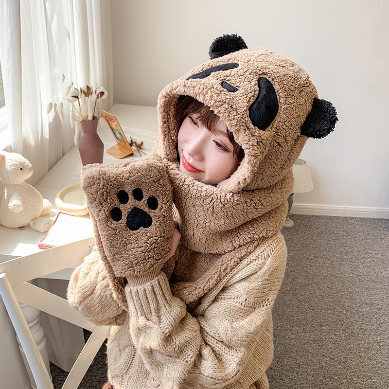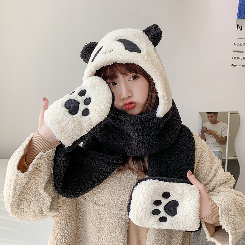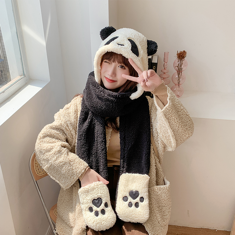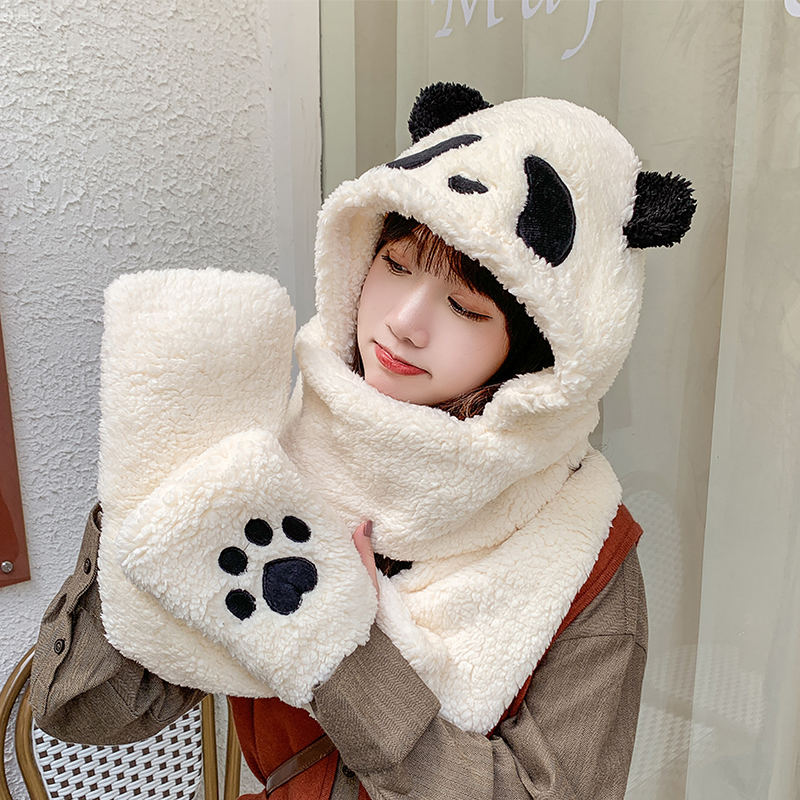 3 in 1 Cute Panda Windproof Hoodie Scarf and Gloves