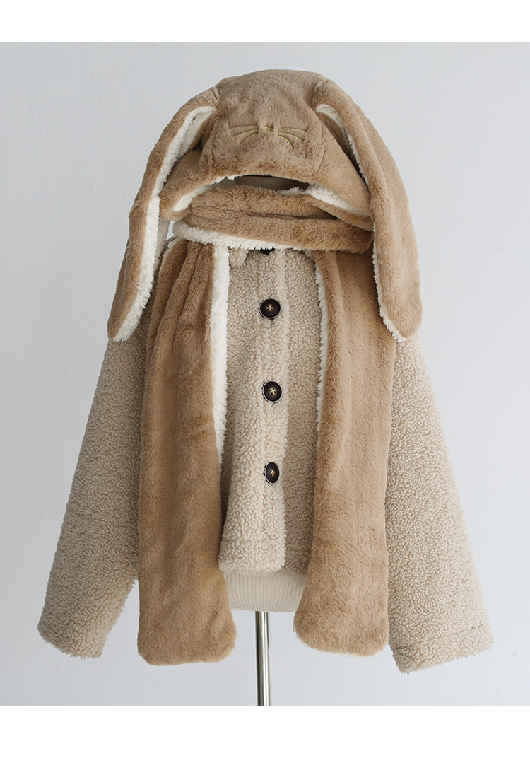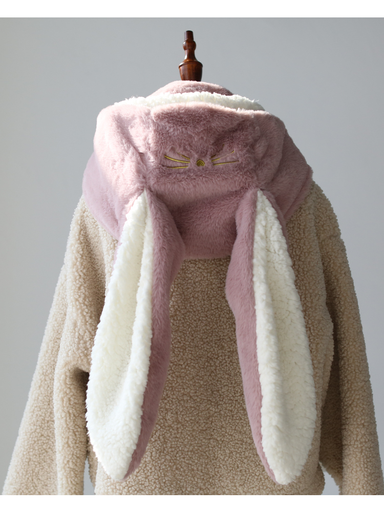 3 in 1 Cute Rabbit Ears Windproof Hoodie Scarf and Gloves