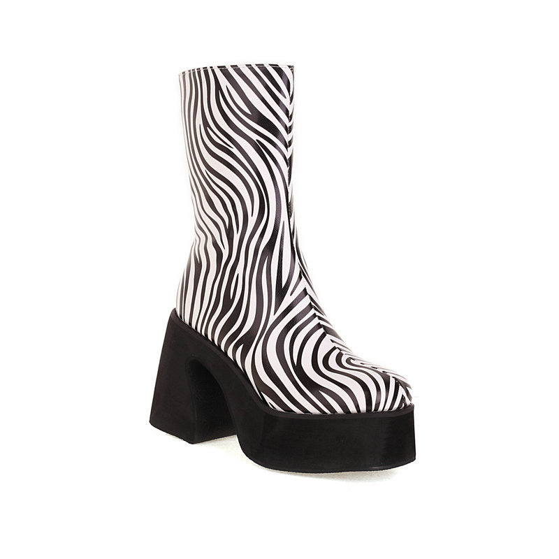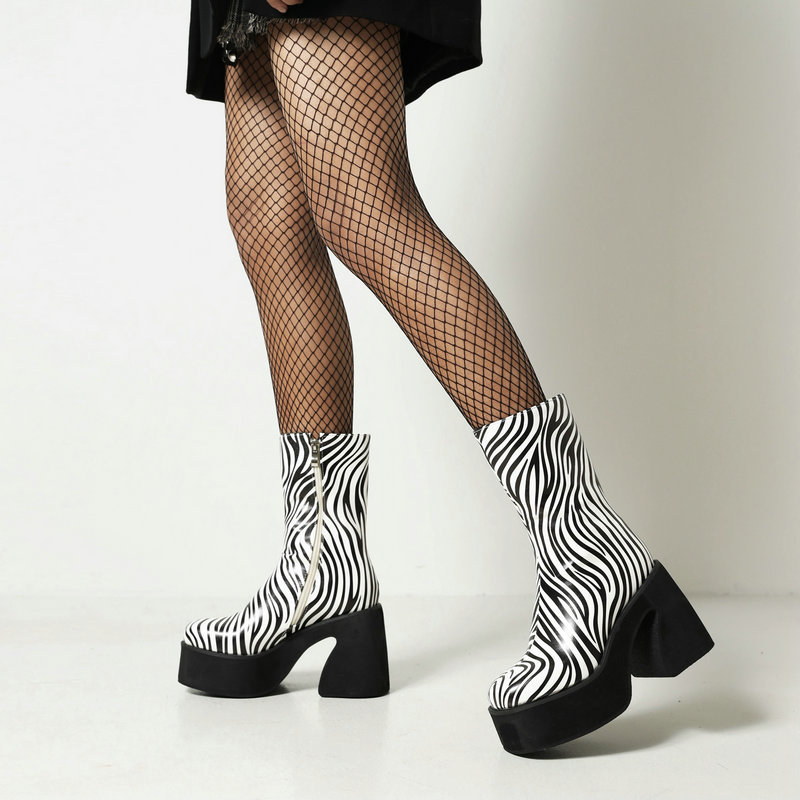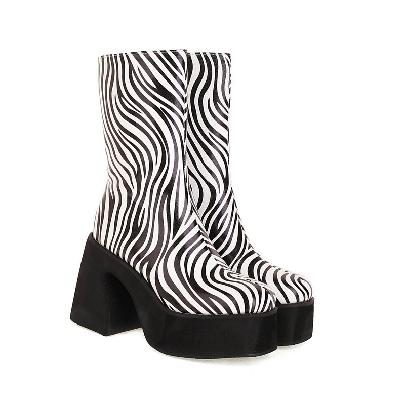 Chunky Zebra Pattern Heeled Boots