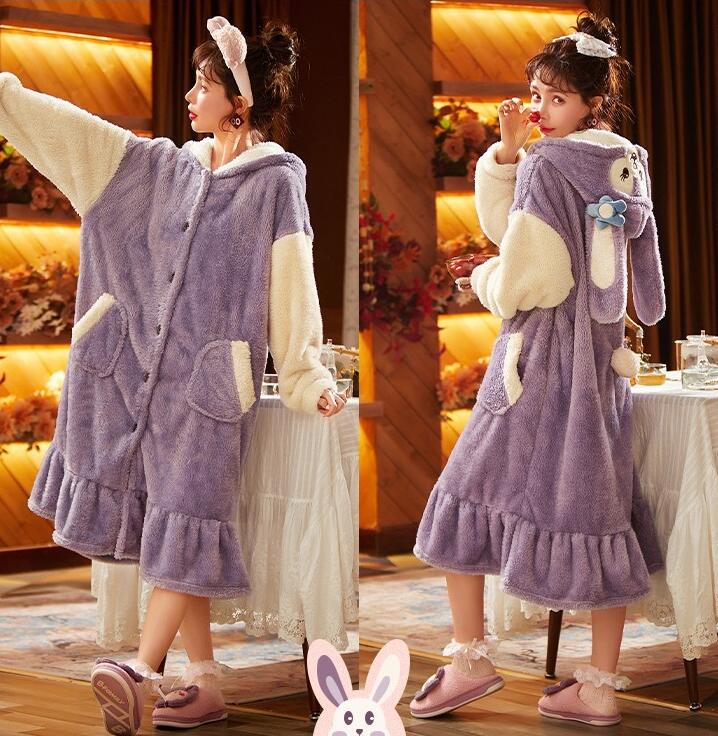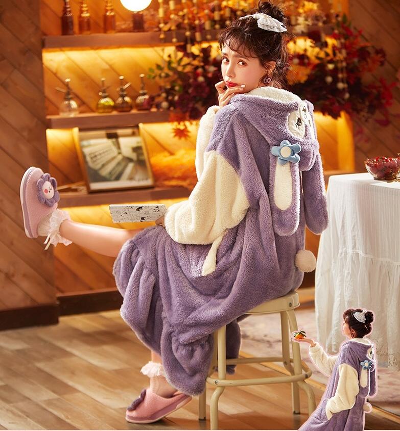 Cute Purple Bunny Fluffy Pajama Nightgown