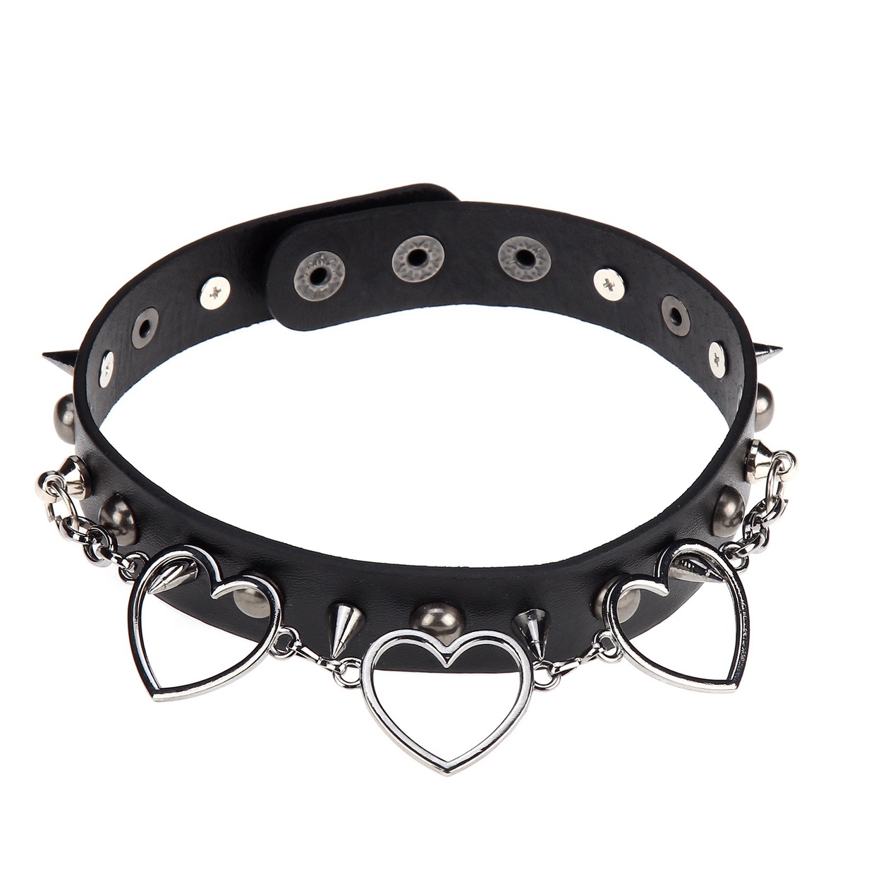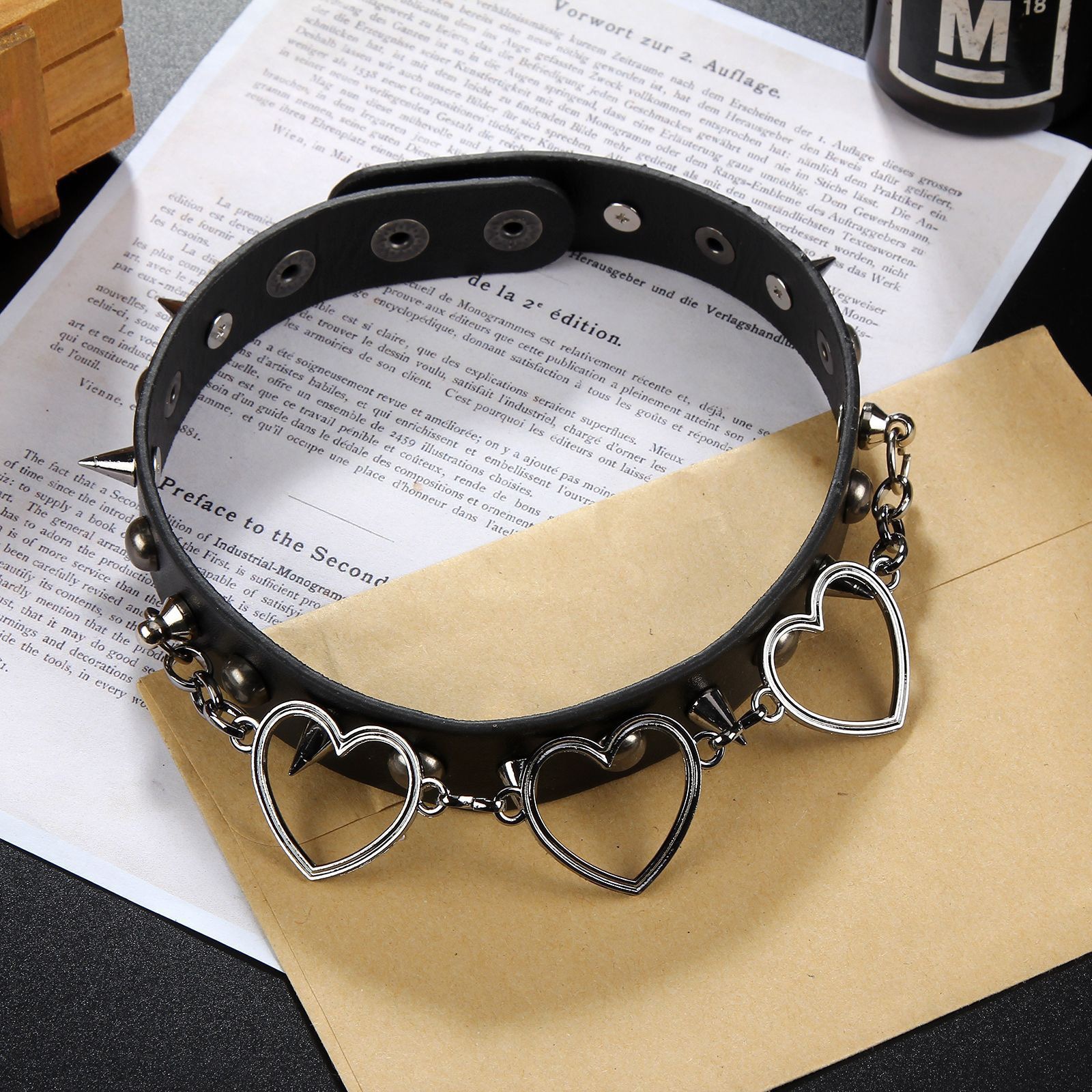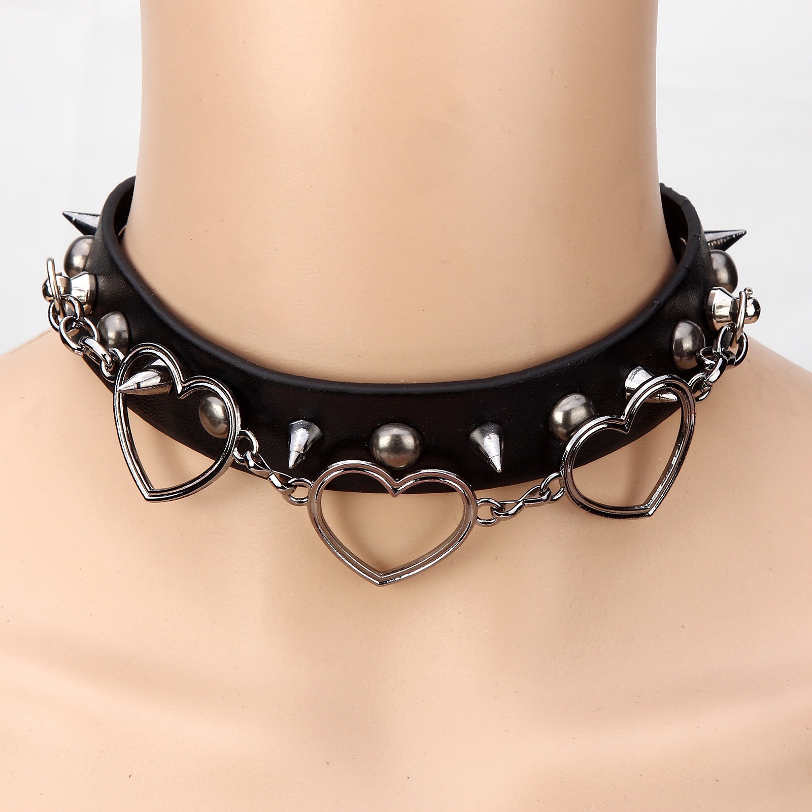 Dark Metal Heart Rivet Leather Collar Necklace Choker