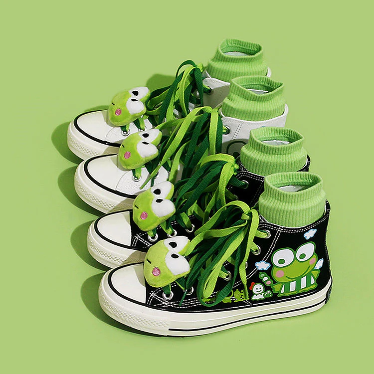 CUTE FROG HAND PAINTED HIGH TOP SHOES