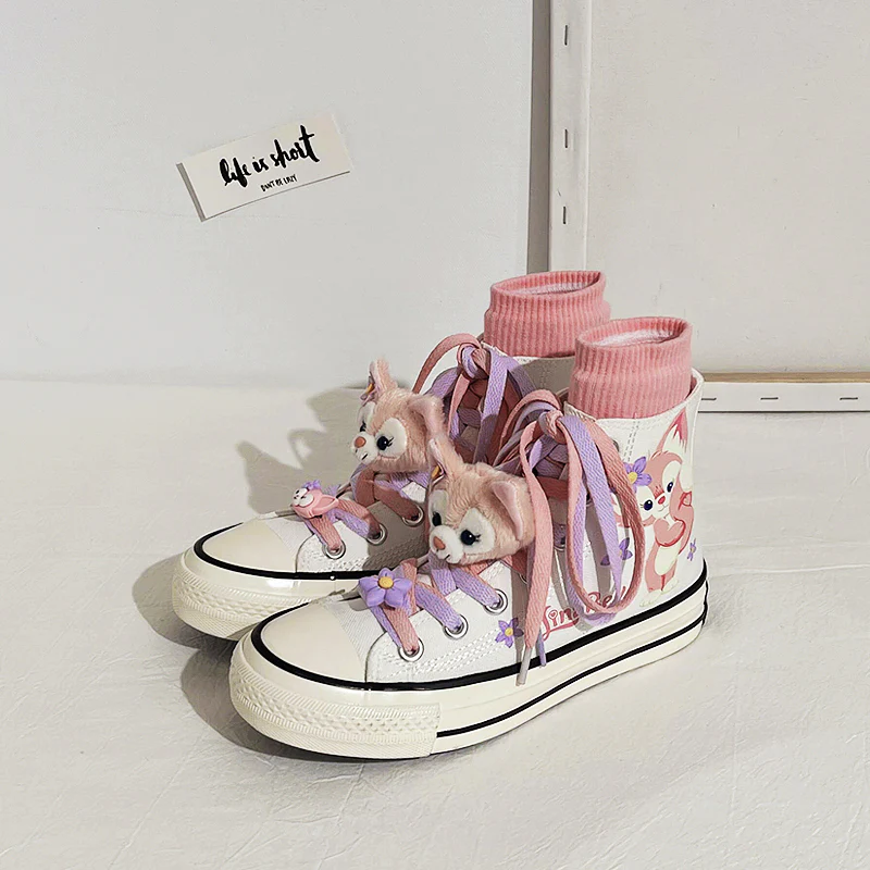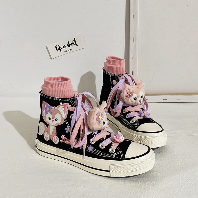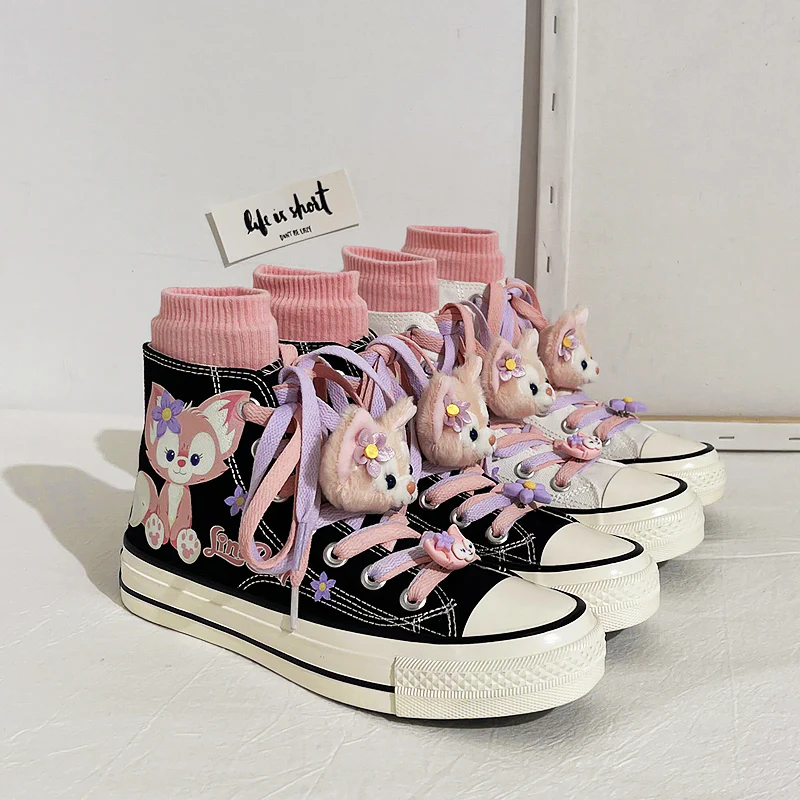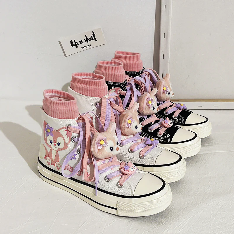 CUTE FOX HAND PAINTED HIGH TOP SHOES