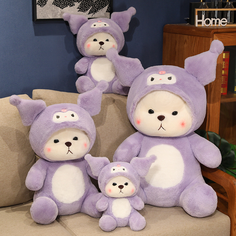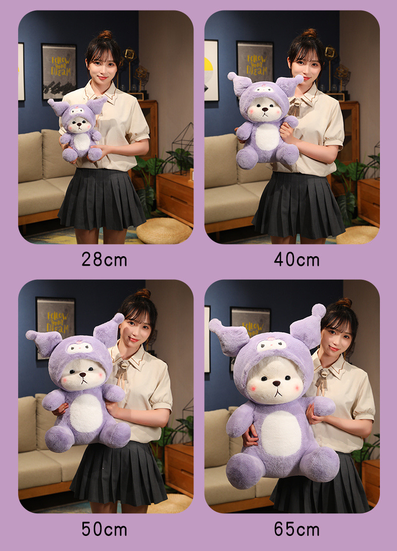 Embrace the enchanting world of Kuromi with our Purple Kuromi Transformed Bear Doll Plush Toy. With its captivating fusion of characters, vibrant purple color, and irresistible cuteness, it's a must-have for fans and collectors alike. Whether you're displaying it proudly on your shelf or snuggling up with it at night, this plush toy will bring a touch of magic and mischief into your life. Embrace the playful spirit of Kuromi today!