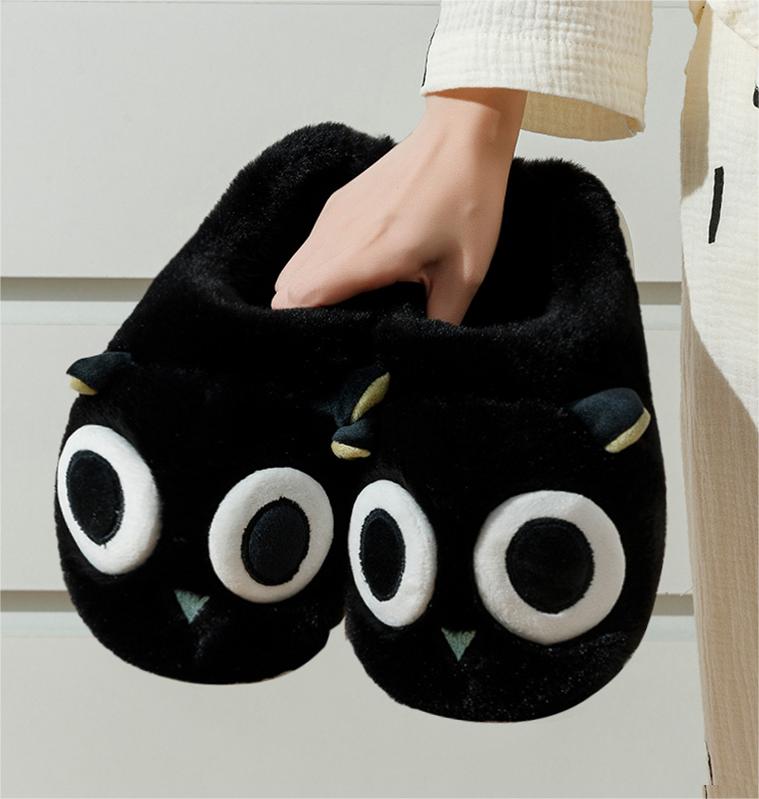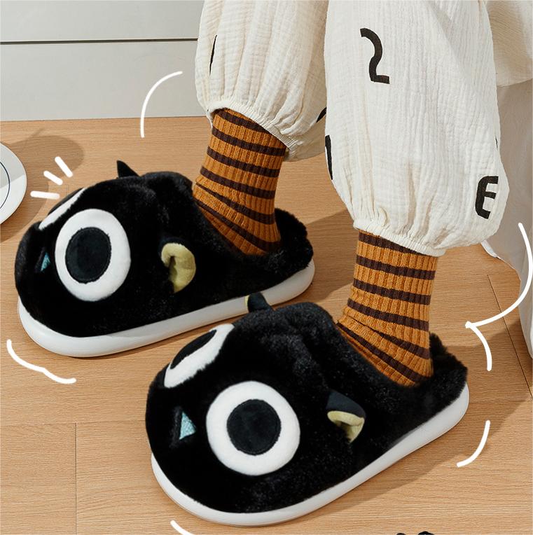 Big Eyes Black Cat Plush Slippers