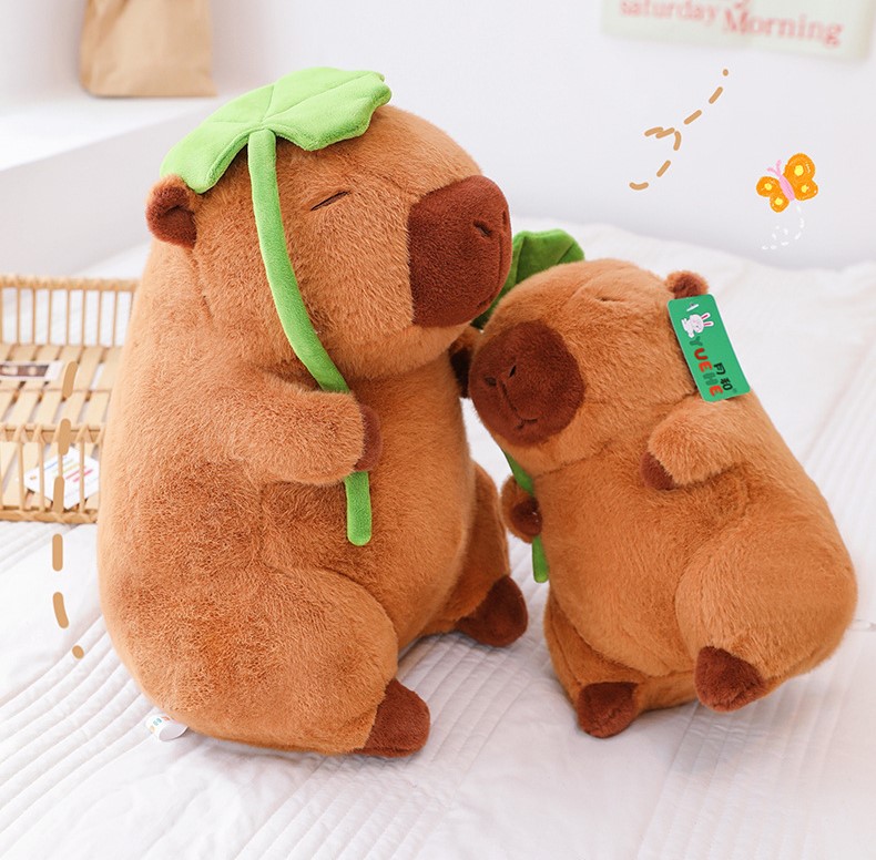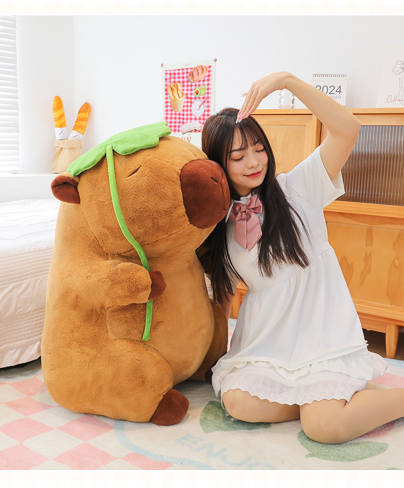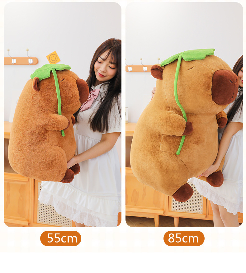 Snuggle up with the world's largest rodent friend! This adorable capybara plush is super soft and cuddly, and it comes with a cute attached lotus leaf. Perfect for all ages! Material: PP Cotton