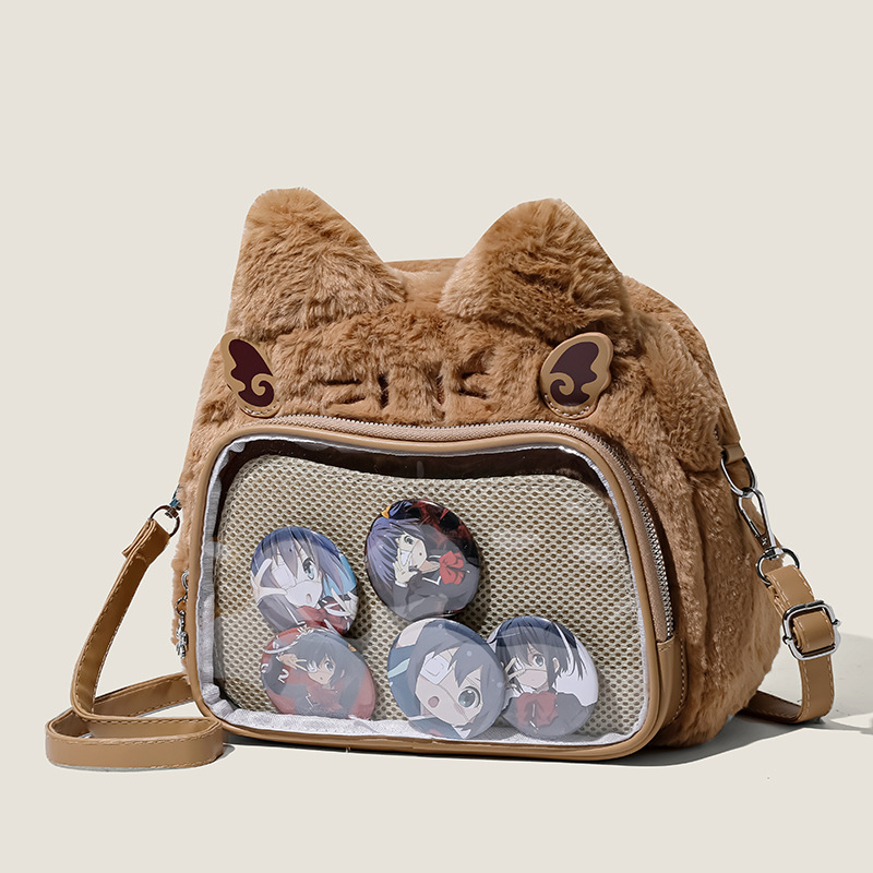 Step back into the nostalgic era of Y2K fashion with our adorable Brown Cat Backpack. This quirky and stylish accessory features a unique transparent big mouth design, revealing your belongings with a playful twist. The fluffy cat ears add a touch of whimsy and charm, making it the perfect statement piece for any outfit.